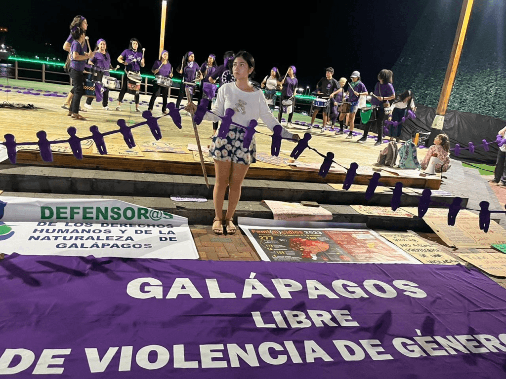 Somos una colectiva feminista de mujeres diversas y tamboreras, defensoras de los derechos de mujeres, niñas, adolescentes y de la naturaleza. Actuamos en marchas y eventos relacionados con nuestras luchas en San Cristóbal, Ecuador. Fundada en febrero de 2023, somos la primera batuka de la provincia de Galápagos, con 17 integrantes, incluyendo jóvenes, mamás y abuelas. Comenzamos tocando con baldes de plástico y pocos instrumentos, pero hemos crecido en habilidades y actualmente interpretamos ritmos como Wayno, Baiao y Samba Reggae, incorporando canto y consignas en nuestras presentaciones.