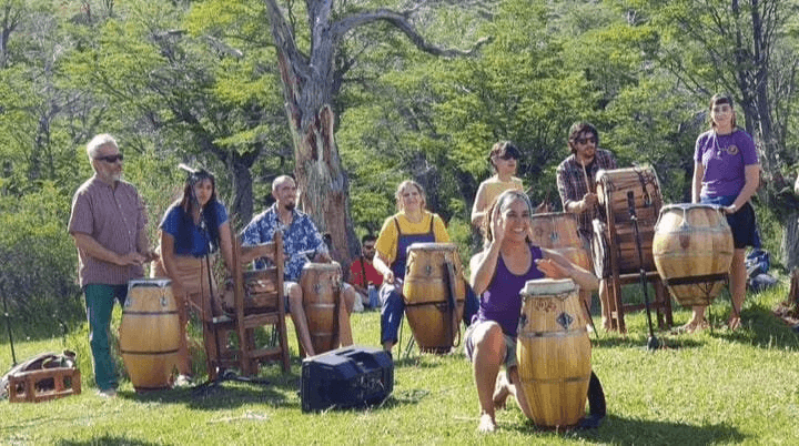 Somos un taller de percusión y ritmo dirigido a mujeres e identidades no binarias, facilitado por Roxana Beroiz en El Chaltén, un pueblo de 2,500 habitantes. La propuesta existe desde marzo de 2021 y funciona durante todo el año, con un receso aproximado en enero y febrero. El taller incluye ejercicios, juegos de coordinación y práctica de ritmos del mundo, promoviendo la apropiación y difusión de conocimientos y expresiones musicales a través de la percusión. Al finalizar el año, realizamos una muestra en el bosque del pueblo. El taller también actúa como semillero de mujeres percusionistas que hoy participan en agrupaciones musicales locales.