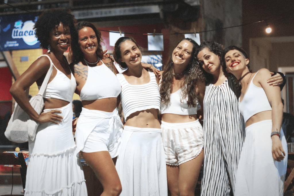 Somos un grupo de mujeres que estudia samba en Itacaré, Bahia. Unidas por el deseo de encontrarnos, ensayar y compartir nuestro amor por el samba, el proyecto está abierto a cualquier mujer interesada en dedicar tiempo al estudio. Nos reunimos tres veces por semana para ensayar y nos presentamos todos los lunes en un bar de la Orla de Itacaré. Además, ofrecemos talleres pagados de canto y musicalización, fomentando la formación y el disfrute de la música en nuestra comunidad.